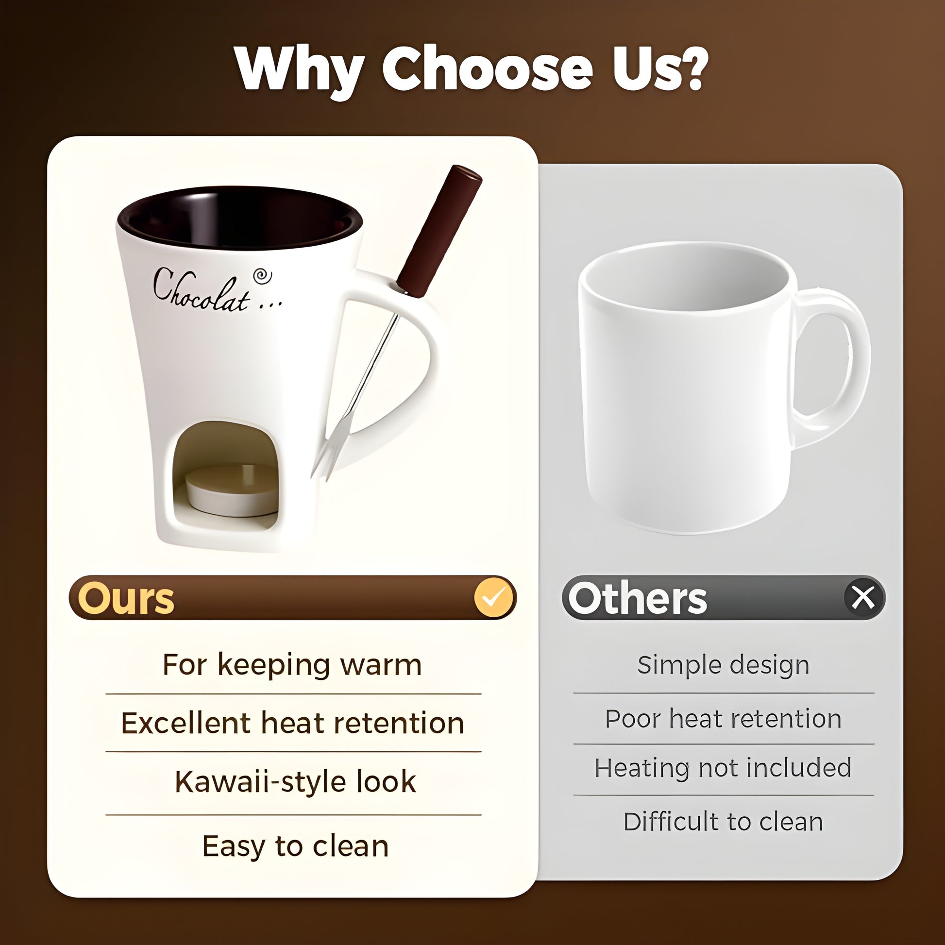 Der Melting Cup ist die einfache, ästhetische Art, Schokolade, Tee oder Kakao zu erwärmen – ganz ohne Strom, Kabel oder Technik. Ein kleines Teelicht reicht aus, um deine Lieblingssüßigkeiten sanft zu schmelzen und warme Getränke länger heiß zu halten.